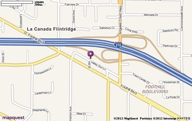 Take the 210 freeway West, (towards Sacramento) exit 210 freeway at Angeles Crest Highway and turn left to Foothill Blvd, then turn right on Foothill Blvd for two blocks and turn right on Hill Street to Valley Sun Lane.
